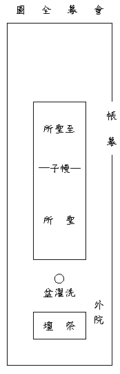 会幕里的陈设,希伯来九章开始已叙述得很清楚,再参看旧约摩西五经,更必能了然於胸。这里不必赘述。我所以提出会幕来,用意是要各位明白外邦人的地位。外邦人在以色列人眼中看来,是一头狗,若偶而误踏祭坛之前,必遭石击而死,保罗因而重有所感,遂慨然说:「所以你们应当记念,你们从前按肉体是外邦人,是称为没受割礼的鱼,这名原是那些凭人手在肉身上称为受割礼之人所起的。那时,你们与基督无关,在以色列国民以外,在所应许的诸约上是局外人,并且活在世上没有指望,没有上帝。」这样外邦人似乎绝望的人,今竟因主耶稣在十字架上的成功,能与上帝亲近,「你们从前远离上帝的人,如今却在基督耶稣里,靠 他的血,已经得亲近了。我们怎能不感谢赞美主呢?