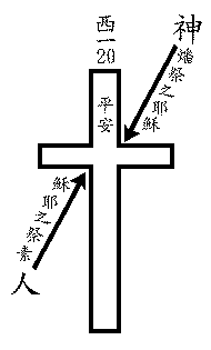 夫燔祭是重指耶稣向神献己,素祭是重指耶稣在人间为完全人,作人类之代表。平安祭之地位,是在中间。(见图)我们赖其子之死,得与神复和。(罗五章十节)故平安祭最重之意,是人因耶稣而得与神和好,除去了种种隔膜,内心恒享平安,(赛九章六,七节,弗二章十四节)而又得为义,并获与神心交。(约一书一章三节)