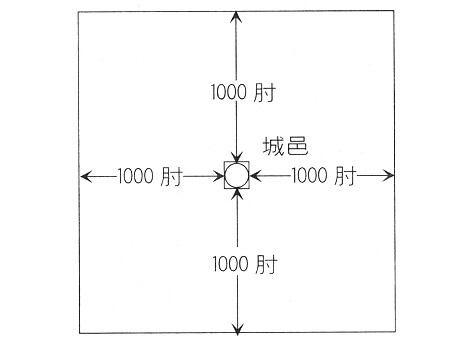 城邑若是扩张怎样处理,却无法肯定。最有可能的说法,是将城邑视为正方形,再在周边加上一千肘,以致牧场的总面积略多于二千肘见方。313