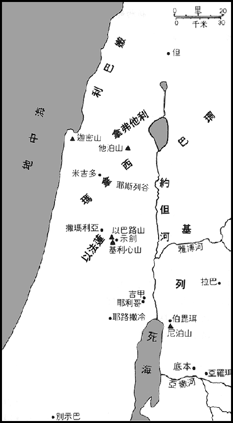 这一段写的是以色列人从加底斯巴尼亚(一46)至撒烈溪(二14)为期三十八年迁徙的经过。地图(见下图──编注)说明了这段漫长的旅程,导致他们和其他两个民族的紧密接触──以东人,二章一至八节中称之为‘以扫的子孙’;和摩押人(二812)。这两个名称经常在旧约中出现,因这些小国数百年来一直和以色列成为近邻。在这数百年间,双方的关系屡经变化;大体而言,以色列和这些种族之间并不亲善。创世记透露以色列人对摩押人(也对亚扪人)的出身心存轻视,就如创世记十九章三十至卅八节所解释的那样;但同时,以东人(参创卅六1),摩押人以及亚扪和以色列人关系密切也是公认的事实。这段申命记中提到的其他民族都被认为是外国人,例如亚玛力人(一44)和何利人(二12)等。从一个客观历史的立场来看,以色列人、以东人、摩押人以及亚扪人同样是移居于叙利亚和巴勒斯坦东南方弧形地带的亲属支派,在某个范围内取代了先前的居民(同时在某种程度上填补了人口稀疏的地带),然后渐渐发展成为一些小的王国。旧约著作中清楚意识到这些历史。有趣的是,申命记在这里明白承认以东和摩押两族所占领土的权利。以色列人民没有权利侵害他们‘弟兄的领土’(二4),尤其是,他们必须避免冒犯他们或是引起任何的敌意。必须注意的是旧约对以色列以外的民族的态度是变化的,并且作了一些仔细的区别。
