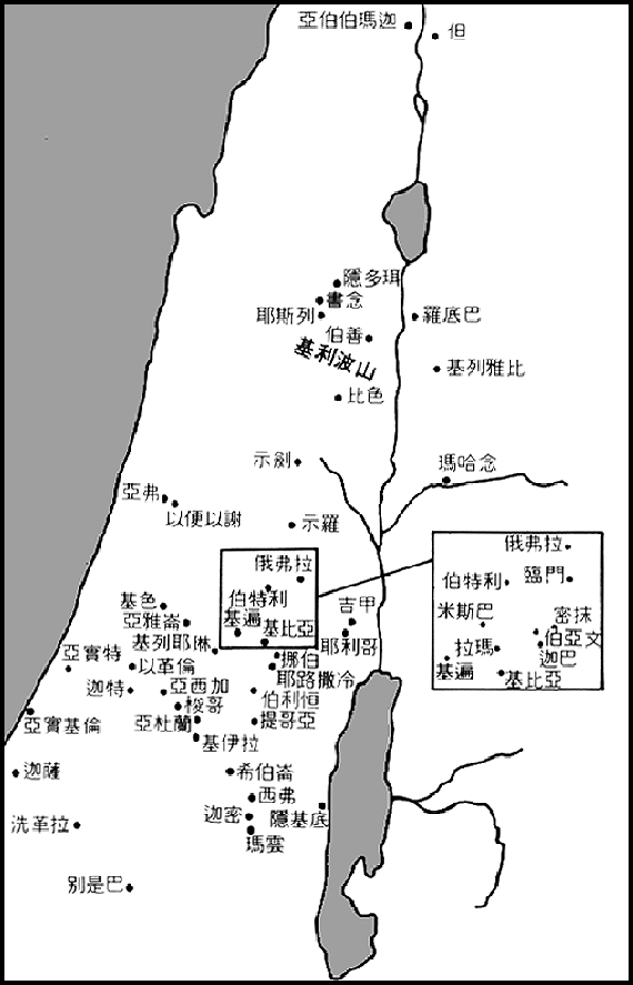 一直以来以色列分割为两个小的王国互相攻击,而非利士人看来很少采取行动;但当大成为联合以色列的王后,他们马上发动攻击。可能他们第一次的攻击,发生在大占领耶路撒冷之前;十七节提及的保障,可能指亚杜兰,曾经一度是扫罗追捕大时,作为大的总部一段时期(看下图)。利乏音谷位于耶路撒冷的南部,这里非利士人驻军于两个地方,逼使大要分头对付他们。这种策略在基利波对付扫罗时,证明很成功(参见撒上卅一章),但现在他们落在大的手里,遭遇两次败绩。看来以色列的首次胜利,是因一次前线突袭而得手;第二次,大改变他的策略,令他们十分惊慌。这次的胜利,无疑也包括其他圣经没详细记述的原因,引致非利士人被迫撤回到他们在地中海沿岸平原的领土内。这是廿五节提及基色的意思,参见下图。