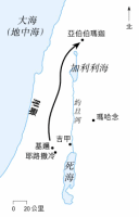非利士人在利乏音谷安营,大卫在巴力毗拉心打败他们。但是他们仍然留在那里,所以大卫再次去攻击他们,追逐他们,从迦巴(希伯来文是 Geba,代上14章15节的七十士译本是这个字,和合本在那里作“基遍”与这一节的英文“Gibeon”相同,译者注)直到基色。